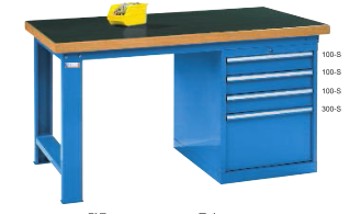 工作臺(tái)WB187504介紹: 工作臺(tái)采用優(yōu)質(zhì)冷扎板精工制作而成,堅(jiān)固的工作桌框架,牢固平穩(wěn),可使工作桌承重1000kg;多種工作桌面選擇,可配合不工使用的要求; 該工作臺(tái)配置了50厚高分子復(fù)合臺(tái)面,適用于檢測(cè),維修等;工作臺(tái)左側(cè)配3*100,1*300四抽落地柜,抽屜可配分格,有利于現(xiàn)場(chǎng)物料的整理,規(guī)劃。