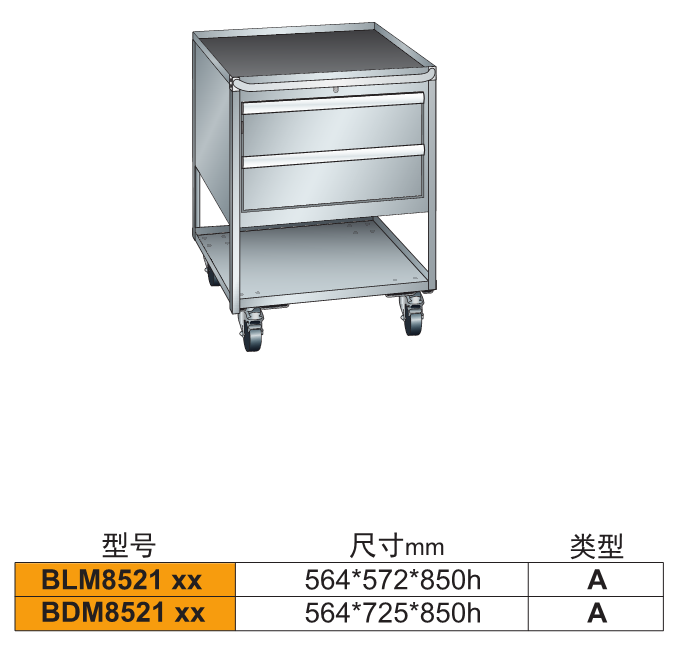 3、外型尺寸的高度:重型工具車為所選用的工具柜的高度加上140mm;