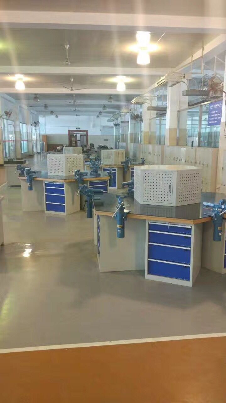 冠久鉗工工作臺(tái)是根據(jù)教學(xué)要求研制的,該產(chǎn)品配備的鉗工工具通用化、標(biāo)準(zhǔn)化和專用化,可提高學(xué)生的操作技術(shù)和動(dòng)手能力。鉗工大多是在鉗工臺(tái)上用手工工具操作為主,對(duì)工件進(jìn)行加工。手工操作的特點(diǎn)是技術(shù)性強(qiáng),加工質(zhì)量的好壞主要取決于操作者技術(shù)水平的高低,它的工作范圍較廣,具有萬能性和靈活性的優(yōu)勢(shì)且不受設(shè)備、場地等條件的限制,因此凡是采用機(jī)械加工方法不太適宜或難以進(jìn)行機(jī)械加工的場合,通常由鉗工來完成,尤其是機(jī)械產(chǎn)品的裝配、調(diào)試、安裝和維修等更需要鉗工,所以說鉗工是機(jī)械制造工廠中應(yīng)用普遍的工種之一,鉗工實(shí)驗(yàn)室設(shè)備也是各大院校、技校不可缺少的實(shí)訓(xùn)教學(xué)產(chǎn)品。該實(shí)驗(yàn)室設(shè)備可以完成常用工具的認(rèn)識(shí)和使用,錘、鋸、鑿、劃線、裝配、調(diào)試、安裝、維修等教學(xué)工具。冠久鉗工工作臺(tái)有六個(gè)角六個(gè)工位,是由六個(gè)工位以弧形方式圍著坐成一圈。其特點(diǎn)是節(jié)省空間適合以小組為單位培訓(xùn)及作業(yè),如此提高工作效率。 鉗工工作臺(tái)適合于學(xué)校精工實(shí)習(xí)教學(xué)方面和公司工廠團(tuán)體小組協(xié)作完成生產(chǎn)工作。