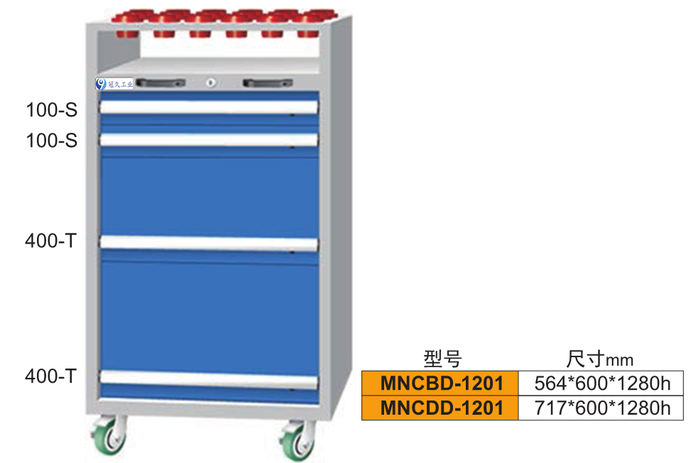刀具車是存放、搬運(yùn)刀具的裝備,此類刀具車可存BT30、BT40、BT50、HSK63、HSK100等多種型號(hào)的刀具。多邊成型的整體式側(cè)板上有模數(shù)化的人字孔,可將刀座按水平或15°、30°傾斜放置,方便多種刀具的存取。 高強(qiáng)度腳輪,車前為兩個(gè)定向輪,車后為兩個(gè)萬(wàn)向帶 剎車輪,推行平穩(wěn),方向性好,剎車固定后不會(huì)滑動(dòng)。