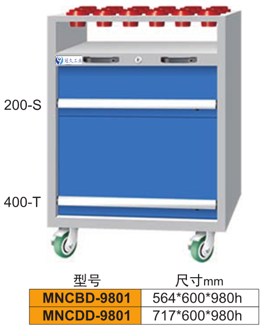 刀具車是存放、搬運(yùn)刀具的裝備,此類刀具車可存BT30、BT40、BT50、HSK63、HSK100等多種型號(hào)的刀具。多邊成型的整體式側(cè)板上有模數(shù)化的人字孔,可將刀座按水平或15°、30°傾斜放置,方便多種刀具的存取。 高強(qiáng)度腳輪,車前為兩個(gè)定向輪,車后為兩個(gè)萬(wàn)向帶 剎車輪,推行平穩(wěn),方向性好,剎車固定后不會(huì)滑動(dòng)。