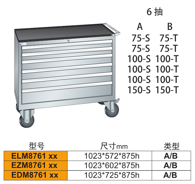 2、由各種型號的工具柜增加頂柜和腳輪等移動部件組成。
