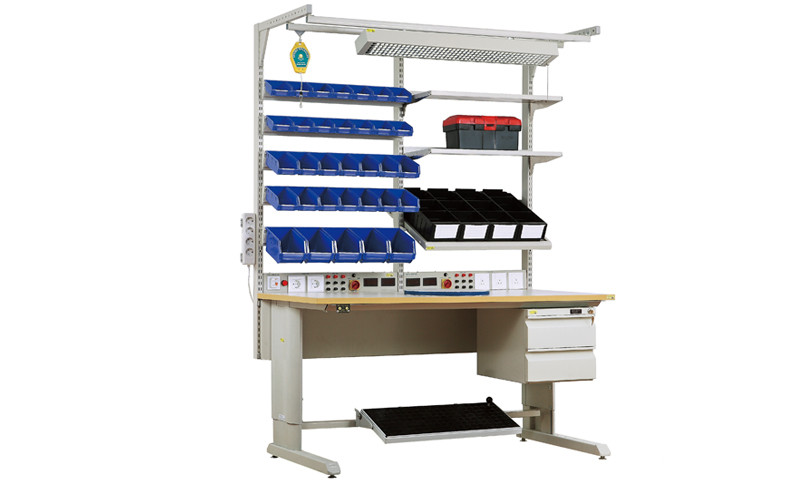 臺面具有防靜電、耐火和耐磨性,表面任意兩點電阻在106-109Ω之間,工作臺高度、水平及重心可調(diào)節(jié),以適應(yīng)不同生產(chǎn)要求,人性化設(shè)計的附件,支架由帶防靜電漆的鋼板制成,堅固耐用,承載能力:500kg,高度調(diào)節(jié)范圍:670-1120mm。