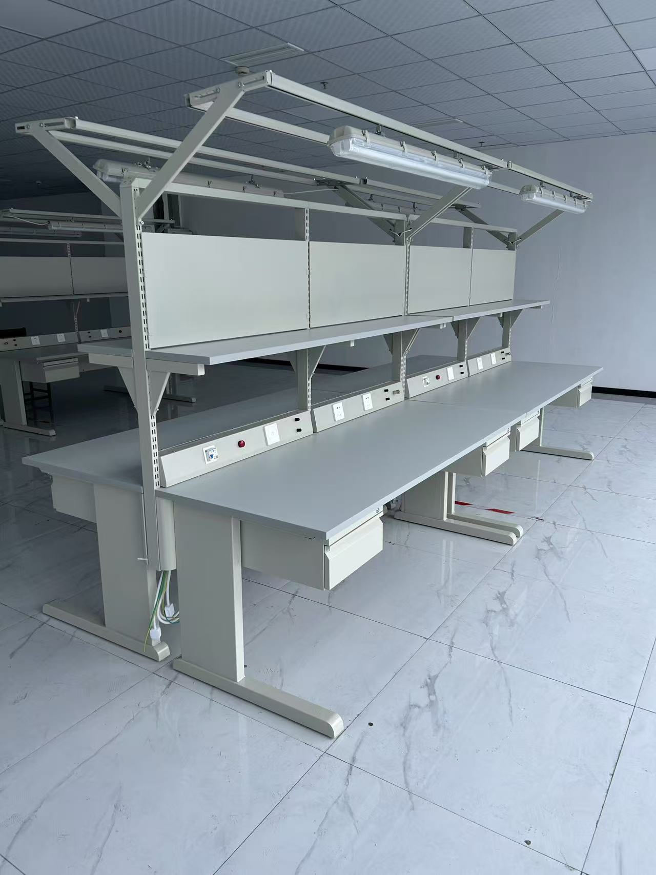 2、防靜電工作臺面采用防靜電防火桌面,具備防靜電、耐火耐磨功能