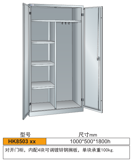 4、標(biāo)配柜體內(nèi)每層層板載重100KG。(如需加重可定制)