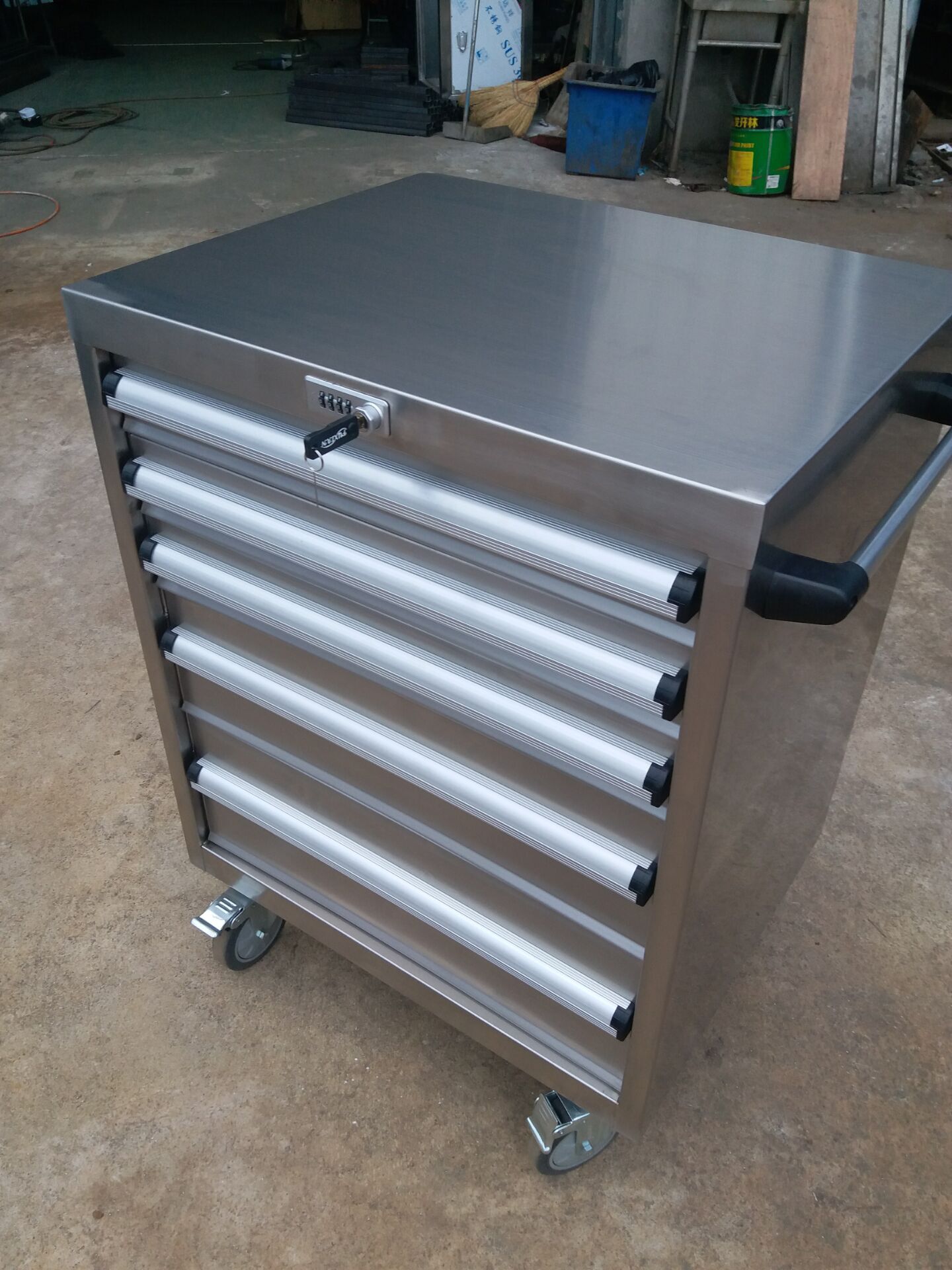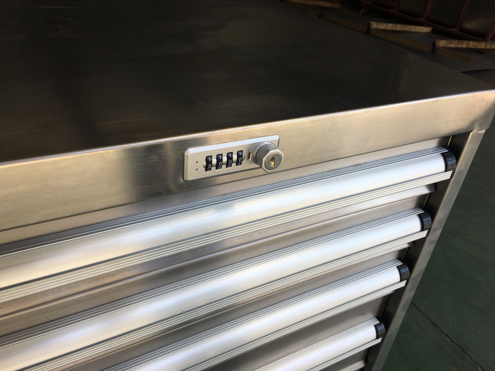 工具柜 車 表面拉絲,磨砂處理,產(chǎn)品美觀大方經(jīng)久耐用.                                 冠久工具柜密碼鎖的優(yōu)點(diǎn):