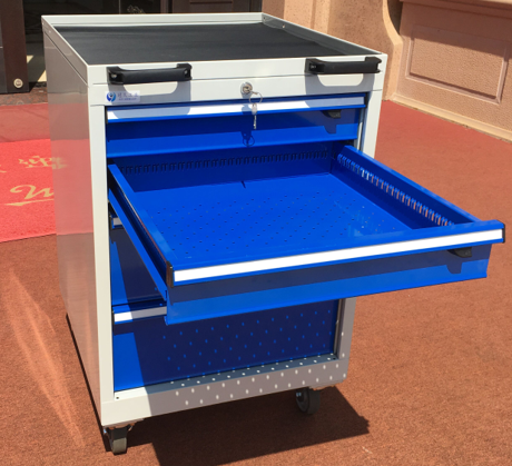 輪子配置:2定2萬帶剎車4寸靜音腳輪;抽屜配置:2x100-T,2x200-T;技術參數(shù):1;材料平整無銹蝕,選用的主材為冷軋鋼板;2;材料厚度:1.0MM-2.5MM:3;每只特制軌可以均勻承重100公斤,可打開90%; 4,各焊接處焊接牢固,表面光滑平整; 5,經酸洗、磷化處理后表面噴塑;6,產品配合間隙適當;7,顏色柜RAL7035,抽屜RAL5017;