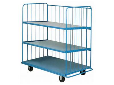 物流臺車存放的產(chǎn)品陳列醒目,在運輸中:一方面對物料的安全起到保護(hù)作用。另一方面不會使已分揀配備好的產(chǎn)品導(dǎo)致雜亂。裝卸十分省力;輪子通常設(shè)計為兩只定向輪,兩只萬向輪以方便人工推行。物流臺車可依據(jù)貨物設(shè)計承載重量。